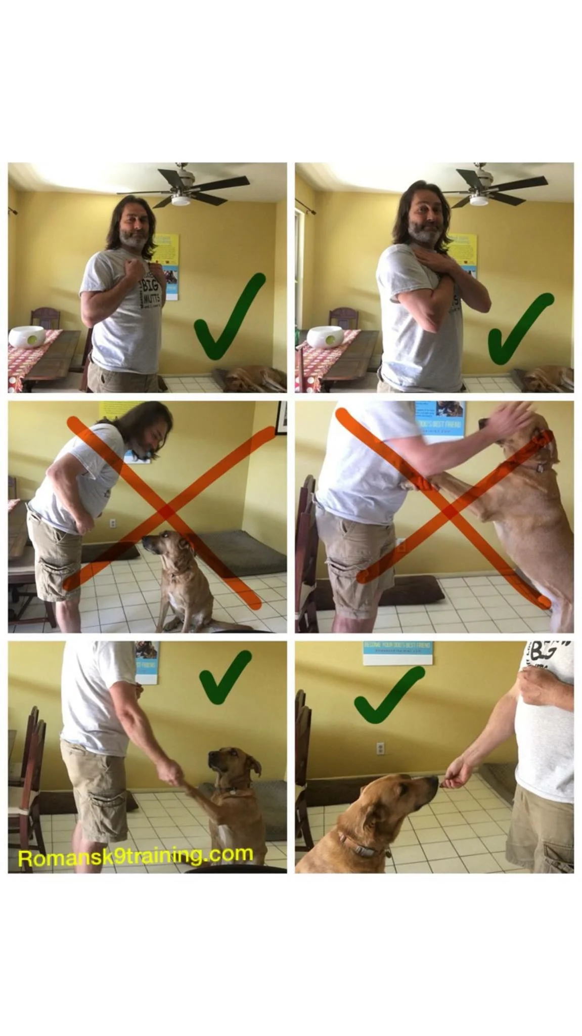 Creat a new routine by teaching your dog what to do upon the arrival, during the greeting and after the greeting.